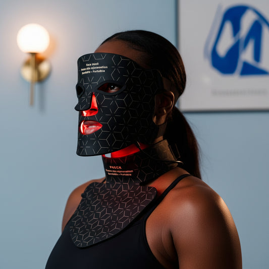 Infraröd ljusterapimask för ansikte, hals och dekolletage 240 + 240 lampor, 460 nm - 850 nm med NiR (nära infrarött ljus).